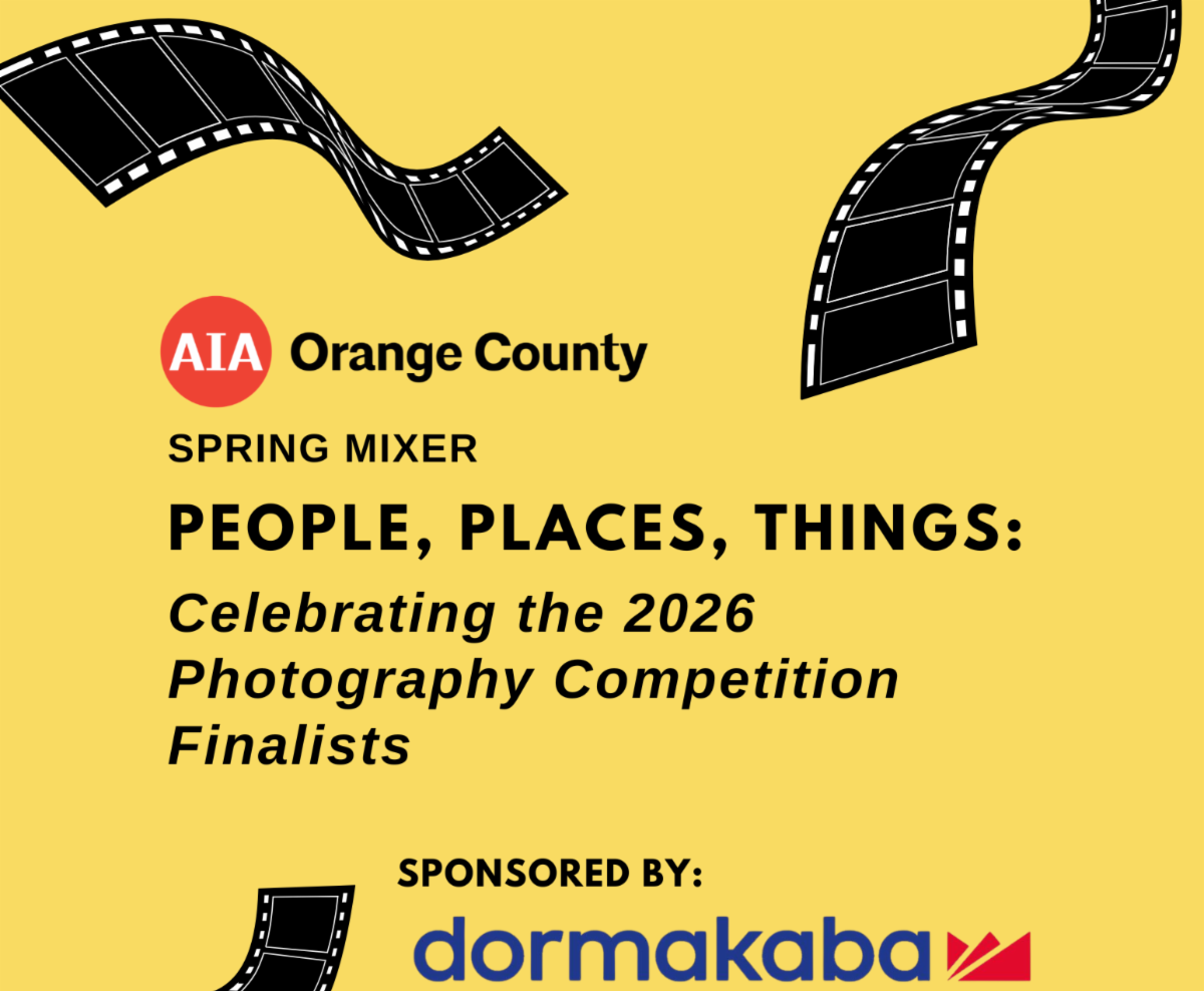 Back to All Events AIAOC Spring Mixer Thursday, May 14, 2026 5:00 PM 7:30 PM AIA Orange County 1981 Orchard Drive Newport Beach, CA, 92660 United States (map) Google Calendar ICS Register now for the AIAOC Spring Mixer! May 14th! Celebrating the 2026 Photography Competition Finalists PARTICIPANTS AIA Orange County | 1981 Orchard Drive | Newport Beach, CA 92660 US Unsubscribe | Update Profile | Constant Contact Data Notice